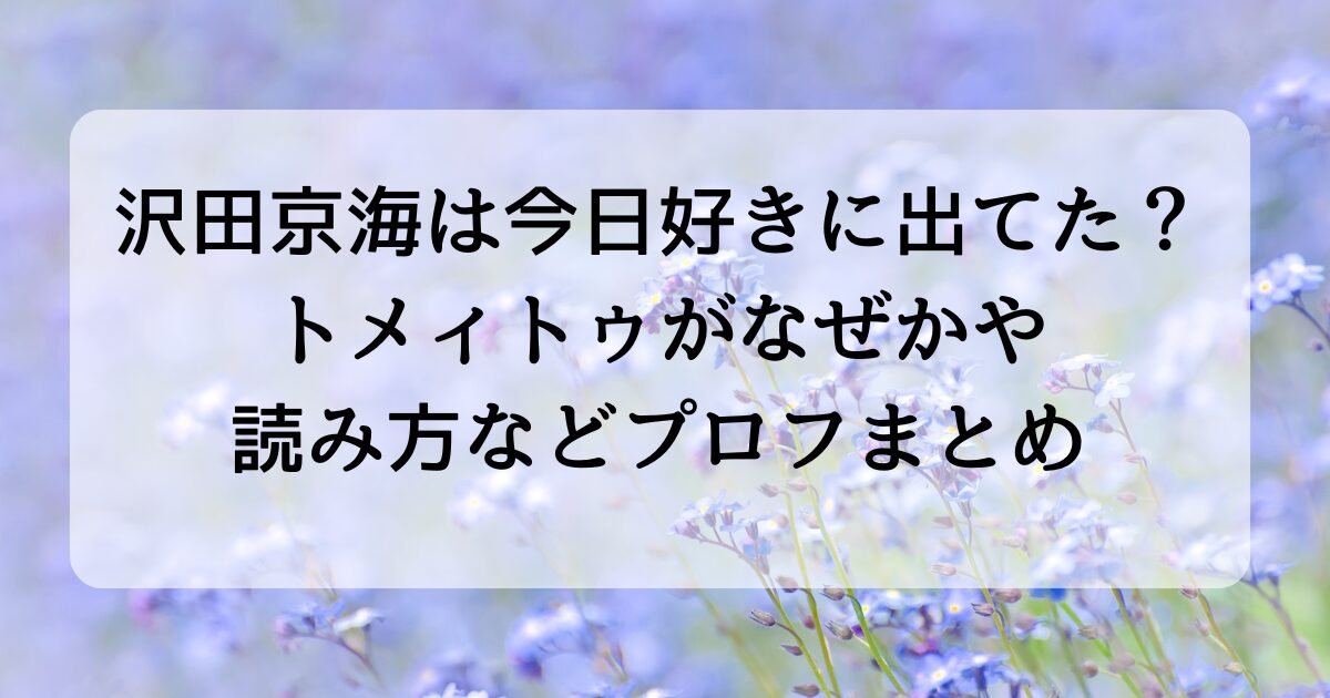 週刊誌とネットの情報が重なってるから、沢田京海さん=トメイトゥさん説が広まってるんですよね。